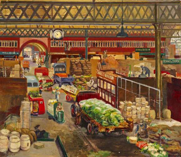 Sams explains that “The Brentford represented in the painting was barely recognisable. The redevelopment of the area has had a marked change on the town.” While referencing Brentford’s heritage as a market town and the original market building depicted in the painting, also celebrates the borough’s cultural diversity. The design features fruits, vegetables, and other food products found in Brentford’s shops; in highlighting the legacy of Brentford Market today, Sams celebrates the area’s diverse “global-local community.”