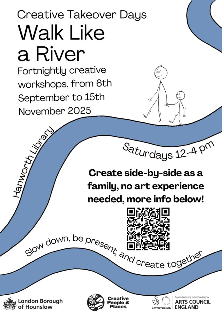 Creative Takeover Days presents, ‘Walk Like a River’ – a fortnightly series of creative workshops at Hanworth Library!