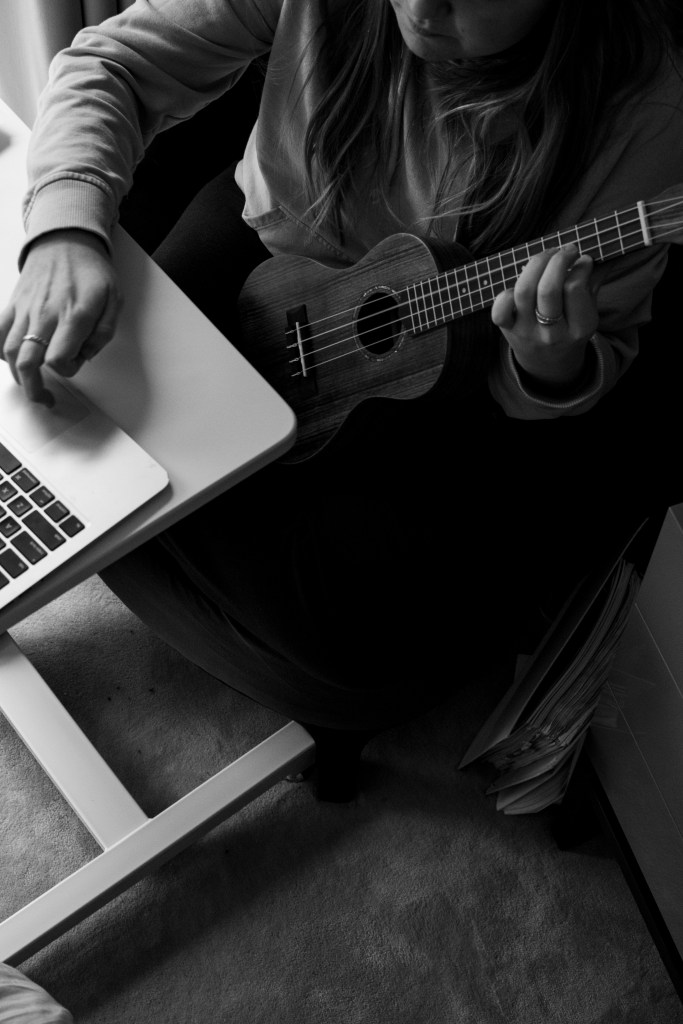 James used a small stool to achieve the perspective he wanted, and a fixed 35mm lens. The photos are black and white, chosen to take advantage of the light’s reflections and shadows. The close-up nature of the shots shows the intimacy he has with his family. James chose to show his family’s hobbies that are helping them to cope during the coronavirus lockdown.