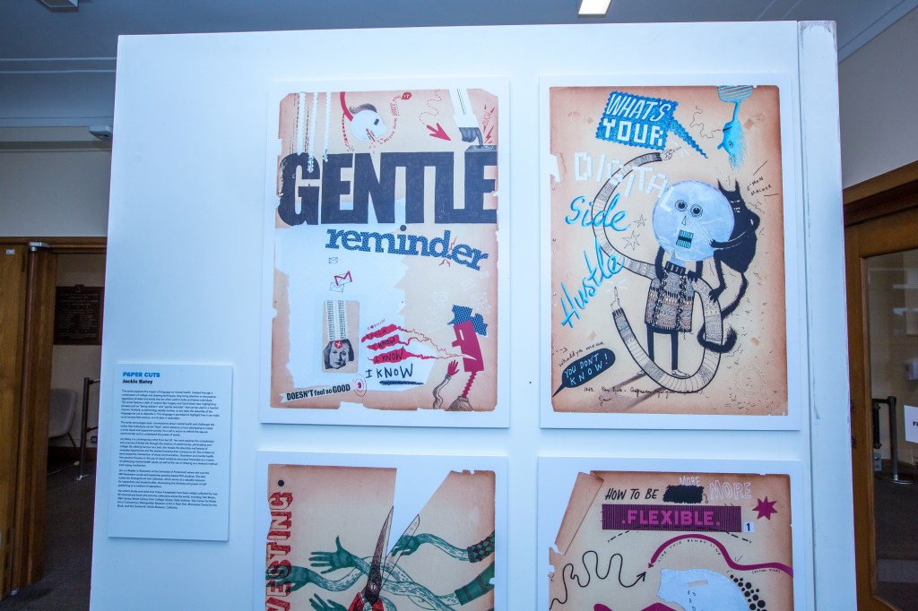 There are touches of personal grief and sadness, finding a way out of the dark, but there is also irony and humour here, making fun of the language of technology and modern systems. Some works challenge the sanitised language that might be used around mental health.