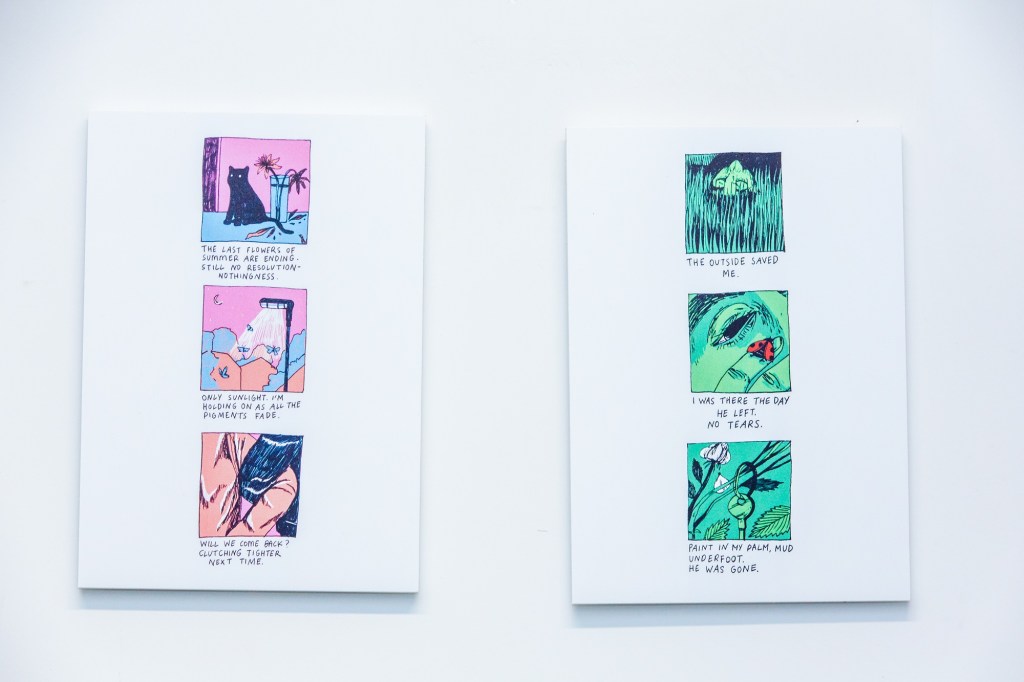 The imagery in the comic is often tied into nature, and abstracted – adding to, rather than illustrating, the words, allowing the audience to make their own stories and connections for themselves.